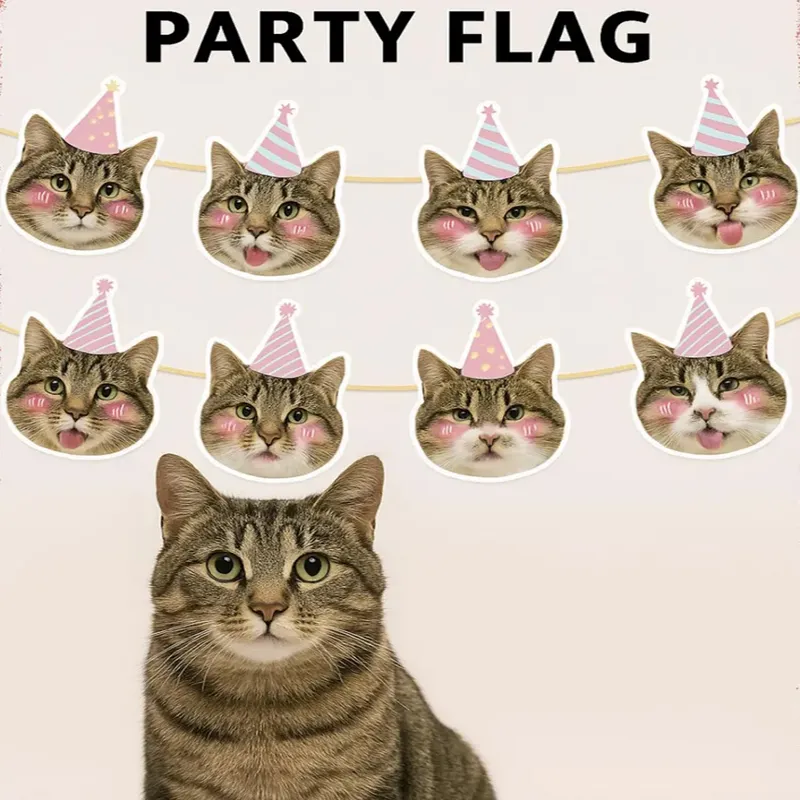 Create a one-of-a-kind birthday banner featuring your dog or cat! Our custom decoration, featuring your pet in a cute party hat, is the perfect way to celebrate. Simply send your pet's photo, and we'll create a heartwarming keepsake for their big day. Order now and make their celebration unforgettable!