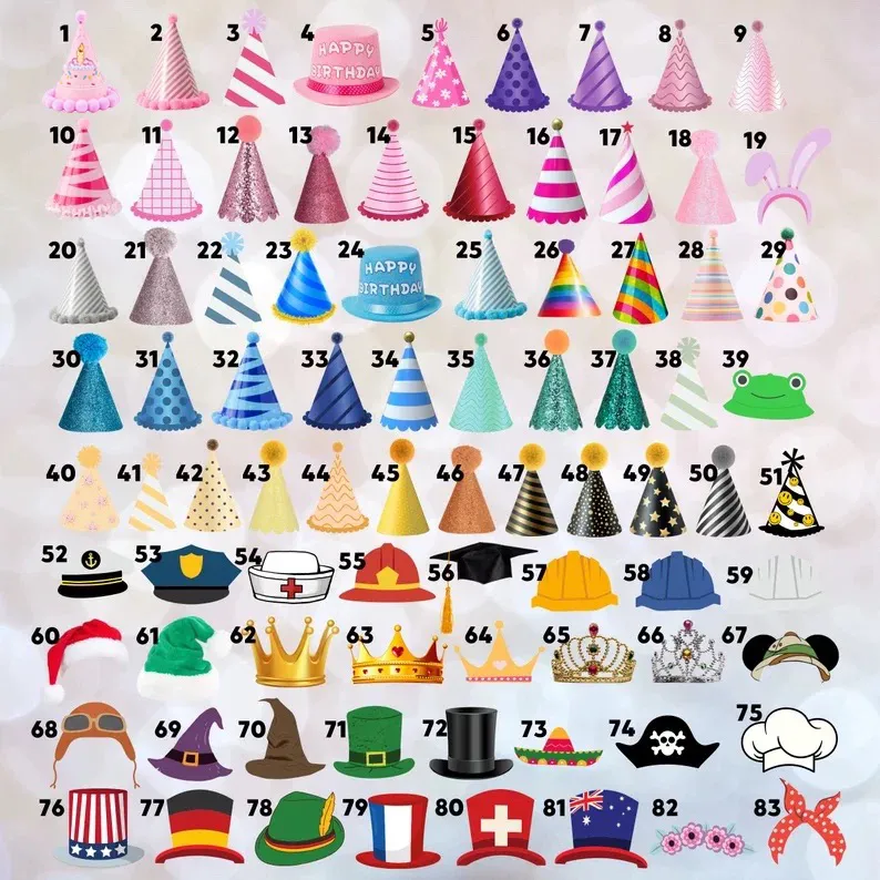 (Note: You may choose to add a name and age on the hat. If no text is provided, the hat will remain plain.)