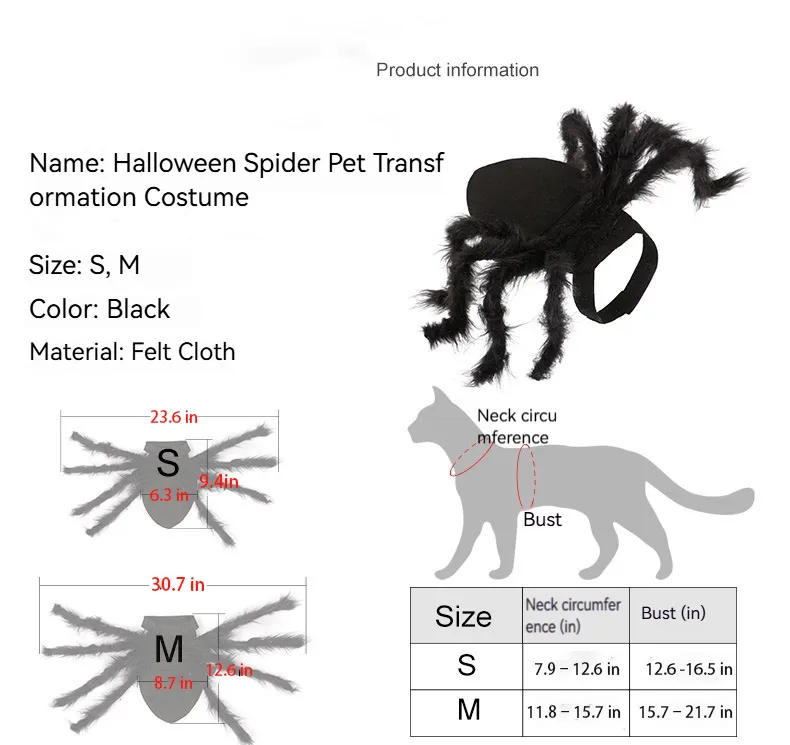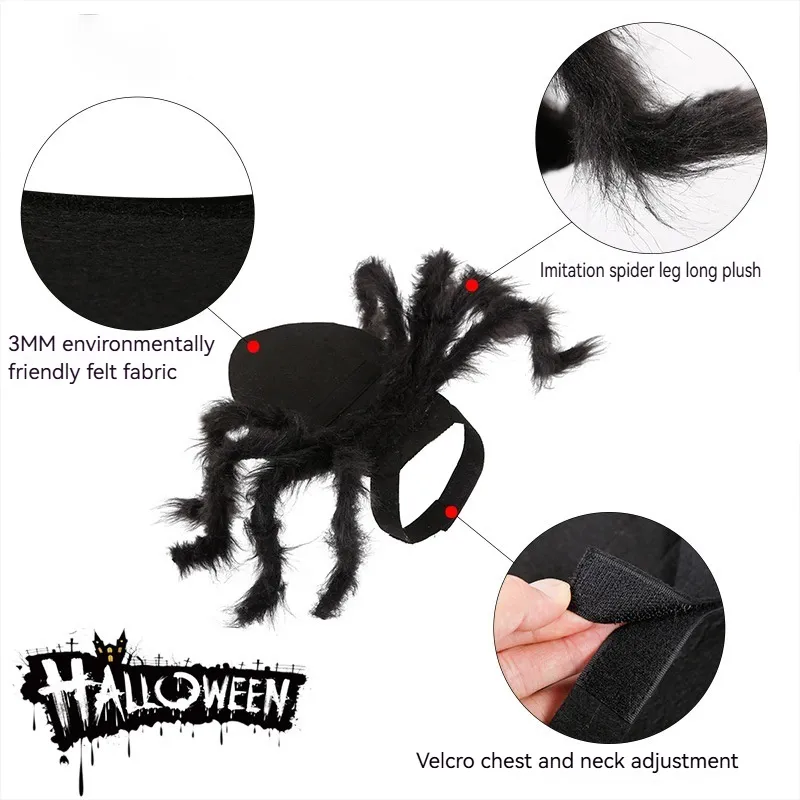 This Halloween, let your furry family member become the talk of the neighborhood with our Spider Pet Transformation Costume! Made from ultra-lightweight 3mm felt cloth, this adorable yet spooky outfit ensures your beloved cat or small dog stays comfy while fully embracing the Halloween spirit.