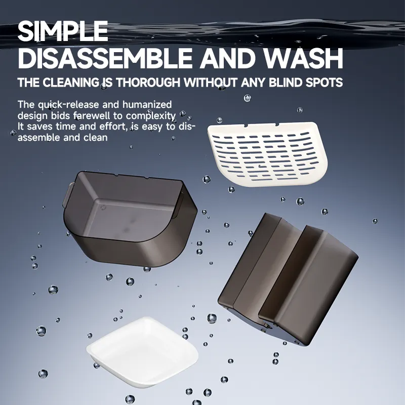 Tilt-style water renewal system ensures fresh daily water without contamination.