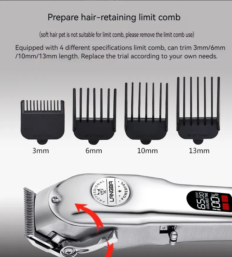 Intelligent Control for Uninterrupted Grooming: Grooming a large dog takes time. Our Smart Current Stabilization System ensures the motor maintains optimal power, preventing overheating even during extended sessions. The Bright LED Display puts you in complete control, showing battery life and settings so you’re never caught off-guard mid-groom.