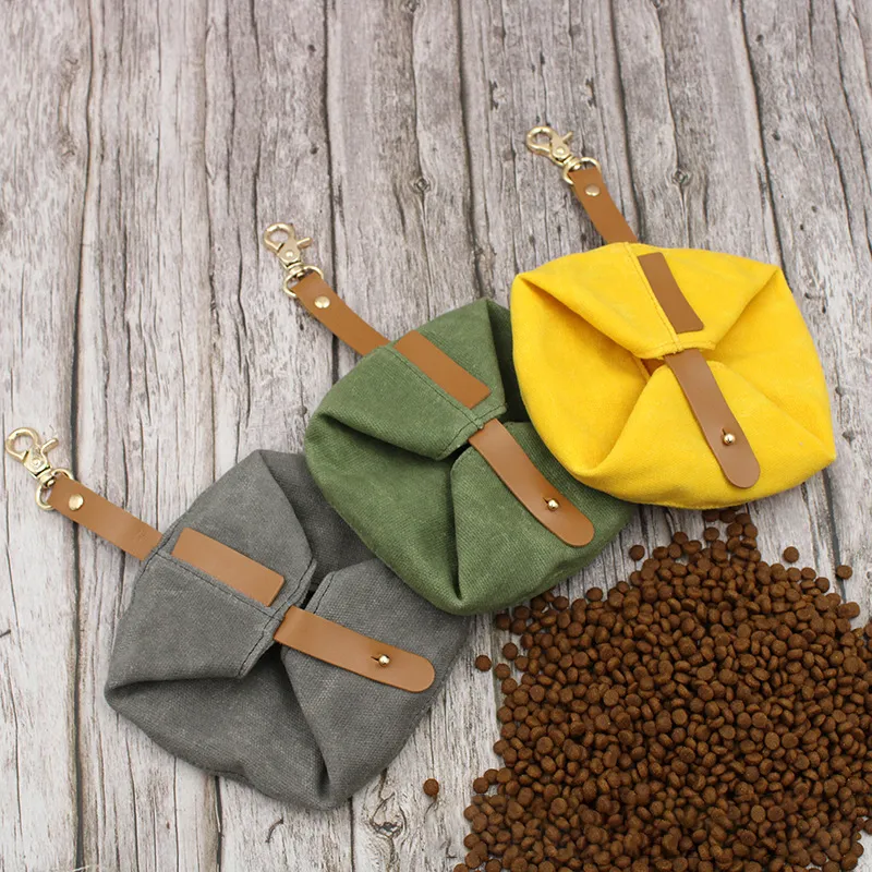 Crafted from premium wax canvas, this dog bowl boasts a 100% waterproof feature, keeping your pet's food and water fresh and dry no matter the weather conditions. Its portability is unmatched, as it can be easily folded and hung, fitting perfectly into your backpack or travel bag without taking up much space.