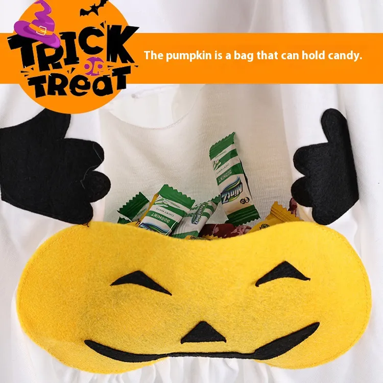 Spooky & Fun Halloween Pumpkin Ghost Pet Costume – festive Dog & Cat Outfit with Detachable Candy Bag