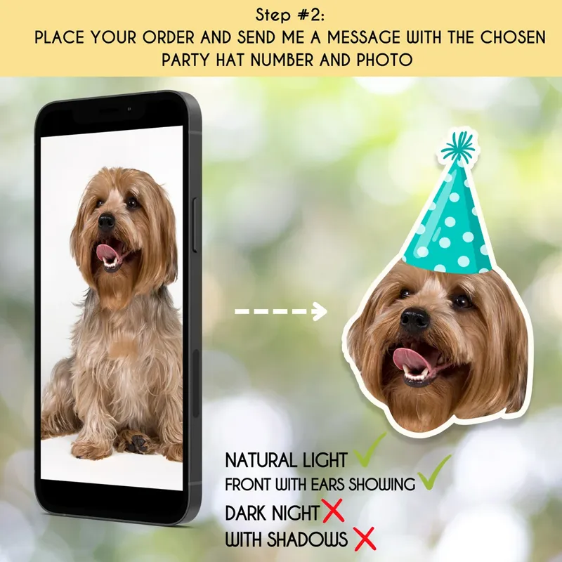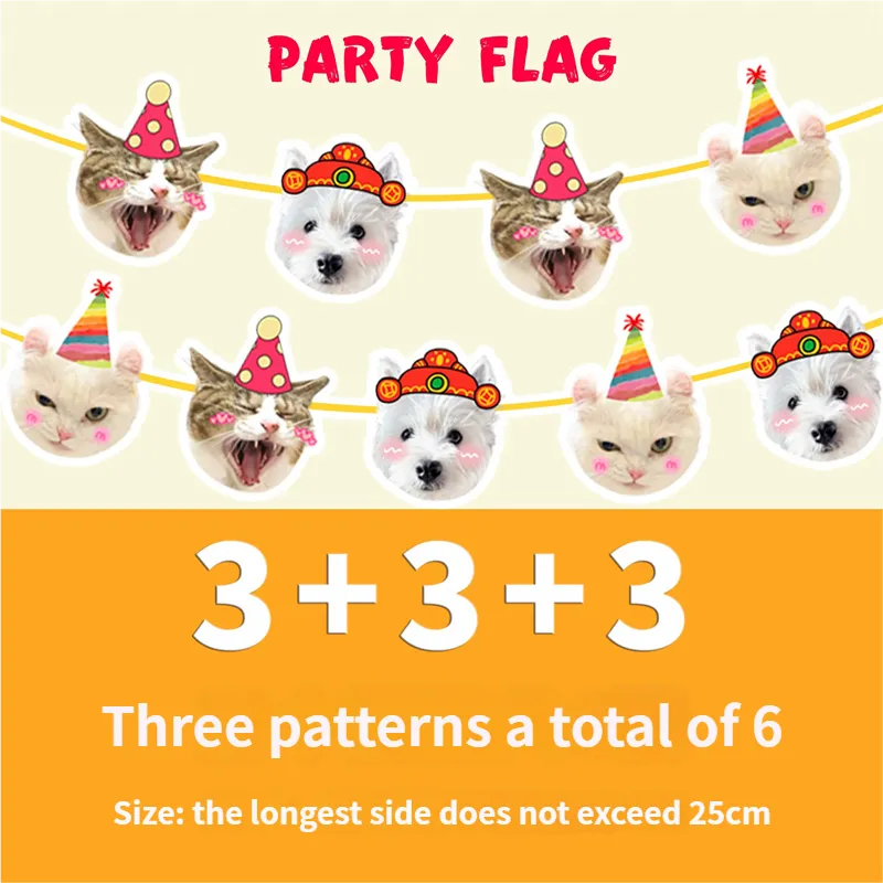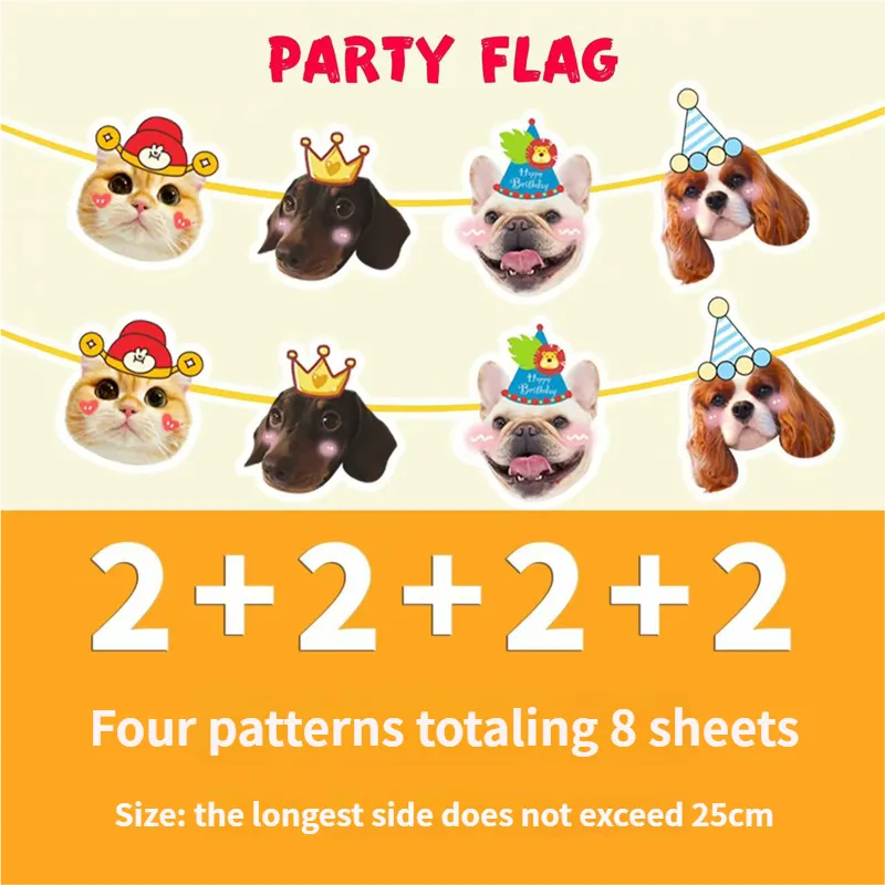 Create a one-of-a-kind birthday banner featuring your dog or cat! Our custom decoration, featuring your pet in a cute party hat, is the perfect way to celebrate. Simply send your pet's photo, and we'll create a heartwarming keepsake for their big day. Order now and make their celebration unforgettable!
