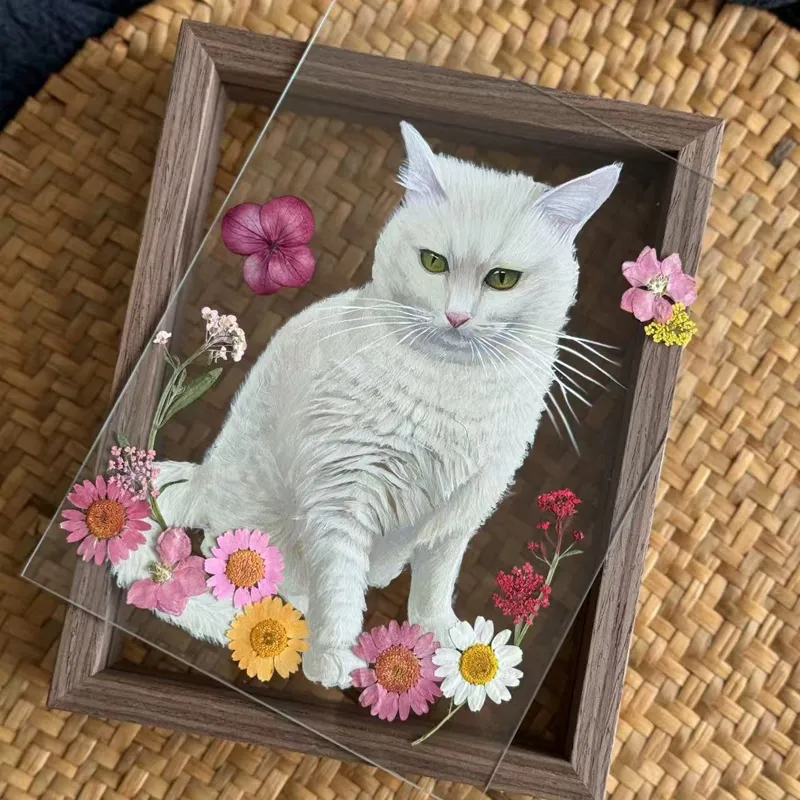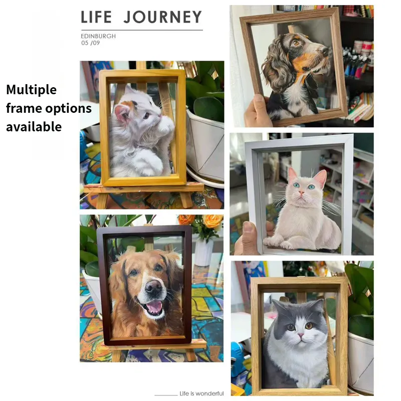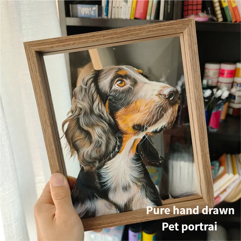 The Magic of Painting on Glass: For an astonishingly lifelike effect, our artists paint on a special glass surface. This photo frame features dual panes of glass, with the artwork securely placed in between.This technique captures incredible detail and depth, making your pet's portrait more vivid, radiant, and true to life.