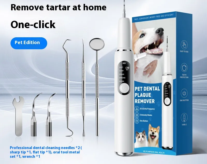 Never Brush Your Pet's Teeth Again! Ultra-Quiet Ultrasound Cleaner removes Tartar & Plaque Effortlessly.