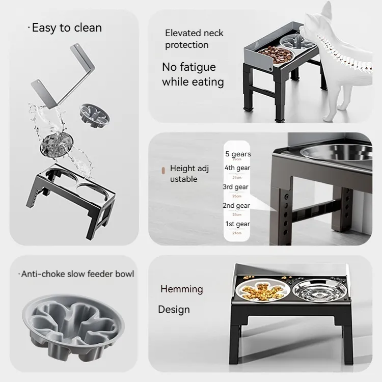 Fully Detachable & Easy to Clean: The entire unit separates into parts. The stainless-steel bowls and ABS base can be quickly rinsed under water, ensuring no hidden food residue or bacteria—a cornerstone of scientific pet feeding.