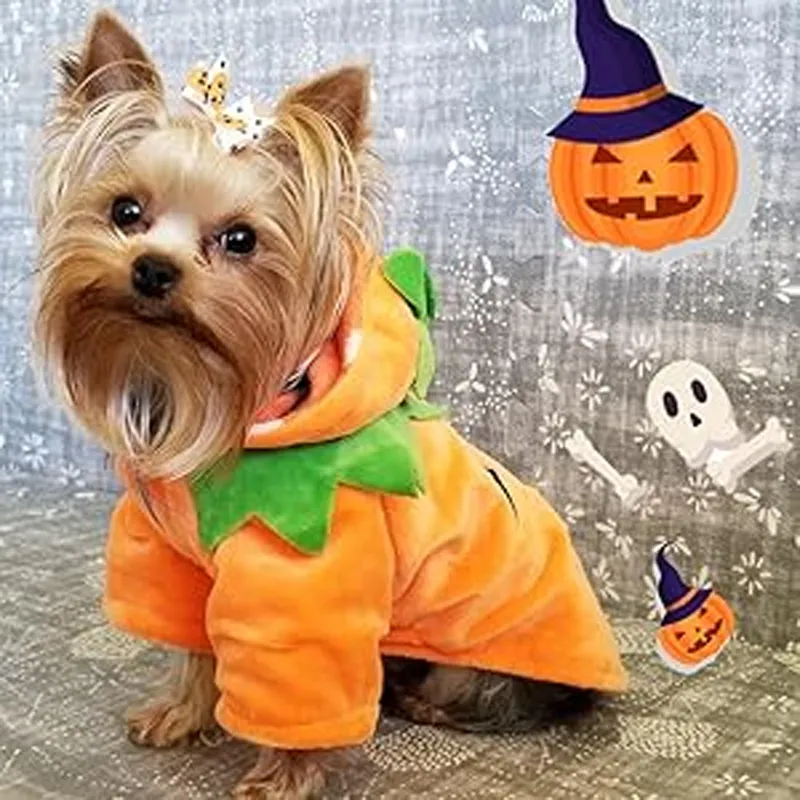 Get Ready for Halloween! Pet Pumpkin Costume with Hood - Perfect for Spooky Fun & Photos
