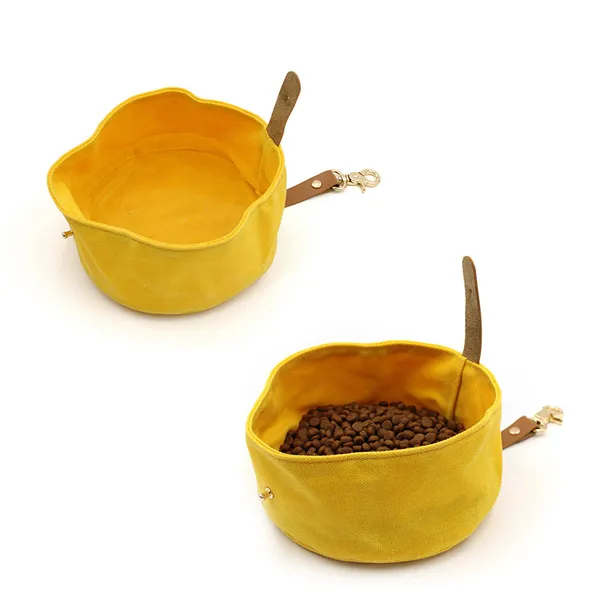 Crafted from premium wax canvas, this dog bowl boasts a 100% waterproof feature, keeping your pet's food and water fresh and dry no matter the weather conditions. Its portability is unmatched, as it can be easily folded and hung, fitting perfectly into your backpack or travel bag without taking up much space.
